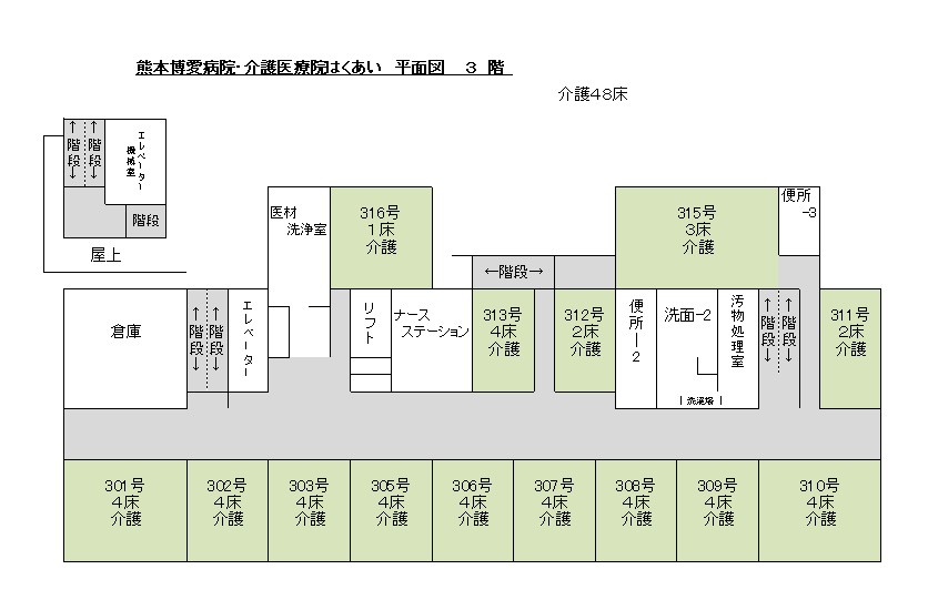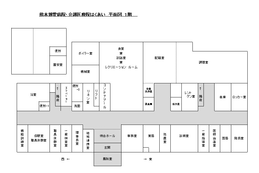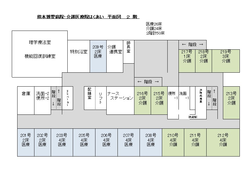 | 設備等 | ベッド数 医療療養病床:26床 介護医療院 :72床 |
