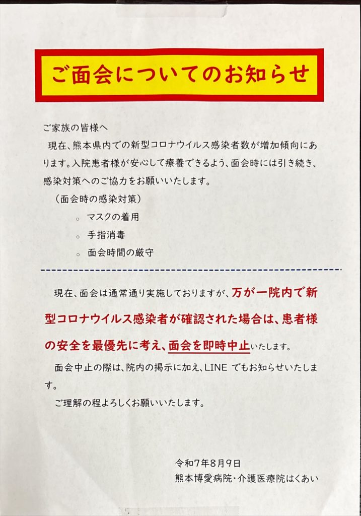 時間や面会可能者の制限はありますが、ご面会は可能です。