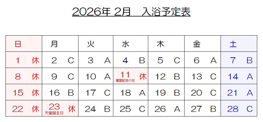 2月の入浴予定表